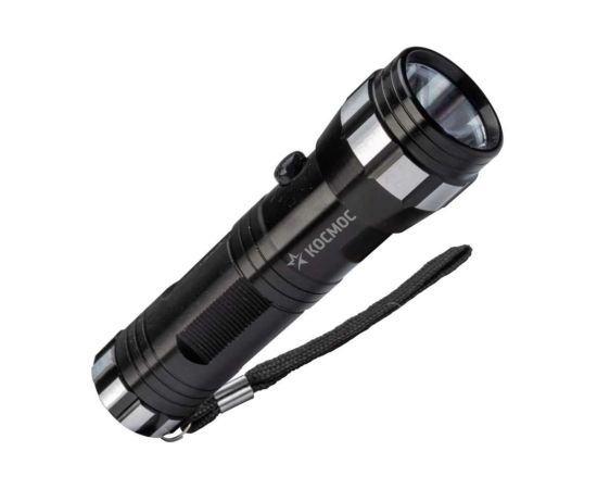 Ручной фонарь КОСМОС 1Вт LED/3xAAА/корпус алюминий/ремешок ручной, KOS108B в прочном корпусе из анодированного алюминия авиационного класса не боится ударов и падений. Кнопка расположена сверху - как на обычных фонариках. Источник питания: батарейки 3xAAA (в комплект не входят).