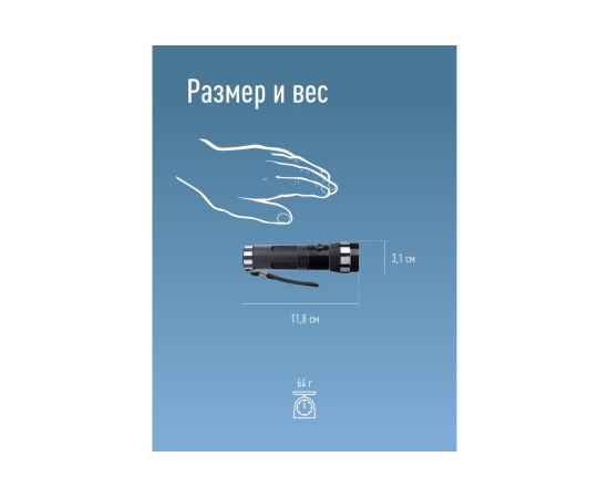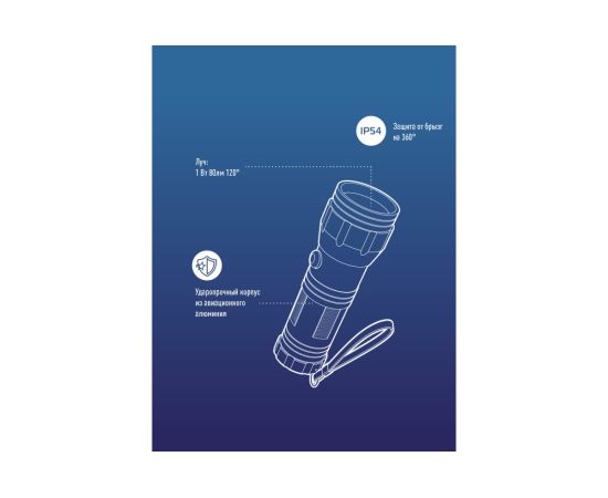 Луч фонаря светит вперед, направленный свет. Источник света: 1 Вт LED. Количество режимов: 1 (яркий).