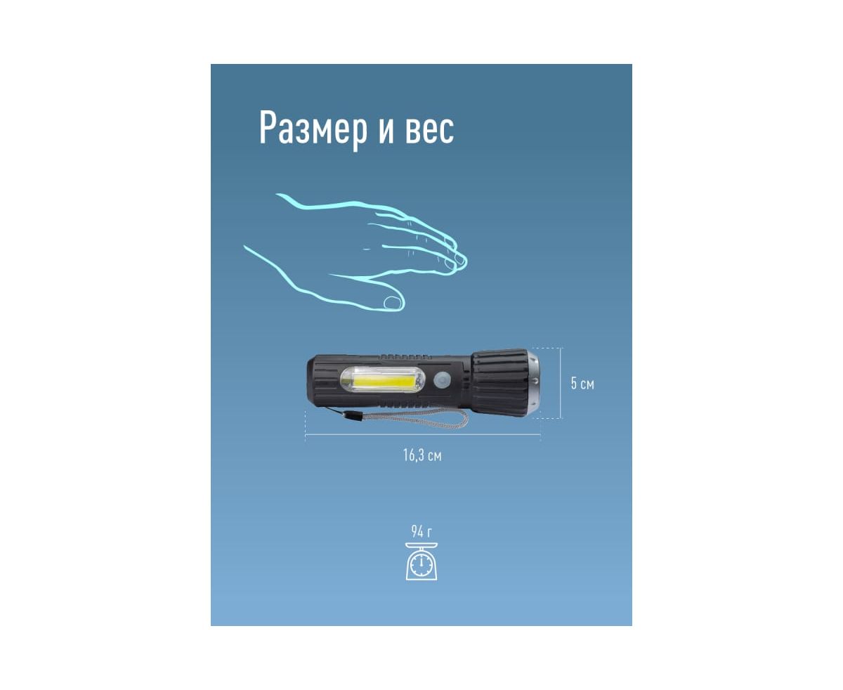 -Количество режимов: 2 (луч, боковой светильник).