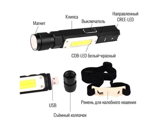 Аккумуляторный налобный фонарь Focusray 2100 трансформер 10W COB 890033 можно использовать в двух видах: как налобный фонарь и как ручной. Аккумуляторный налобный фонарь Focusray 2100 трансформер 10W COB 890033 имеет пять режимов свечения. Светодиод 10 Вт светит в двух режимах: яркий и мощный свет. Светодиод 10 Вт светит в трех режимах: белый свет, красный свет и мигающий красный свет. Аккумулятор литиевый, рассчитан на 4 часа свечения и 4 часа зарядки. Корпус фонаря выполнен из авиационного алюминия.