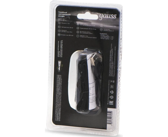 Фонарь налобный Gauss GFL410 черный 3Вт лам.:светодиод. встроенный аккумулятор (GF410)