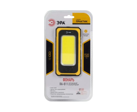 Светодиодный фонарь ЭРА Рабочие Практик RA-811 ручной, аккумуляторный, 15 Вт COB, powerbank, солнечная батарея, магнит, Б0054472 входит в популярную серию ЭРА Практик, созданную специально для представителей рабочих профессий: строителей, монтажников, ремонтников, сантехников, электриков.