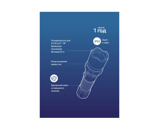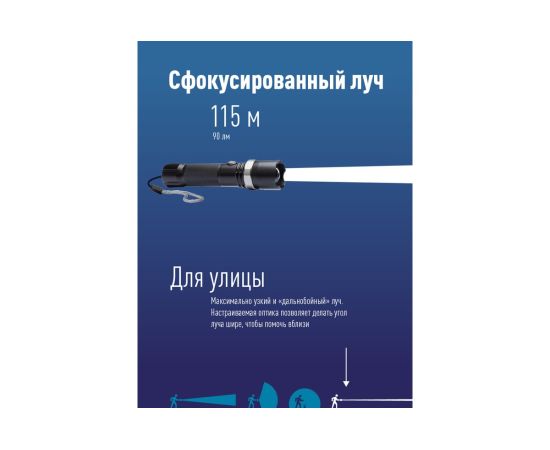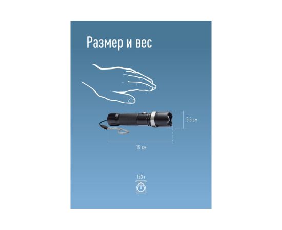 5.Источник света: 3 Вт LED (с линзой - при сохранении мощности светового потока, линза увеличивает дальность луча света и интенсивность светового излучения; зум - регулировка дальности и ширины луча).