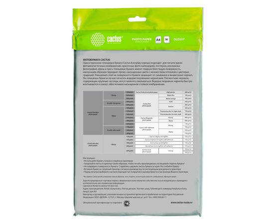 Фотобумага Cactus CS-GA413050ED A4/130г/м2/50л/белый глянцевое для струйной печати