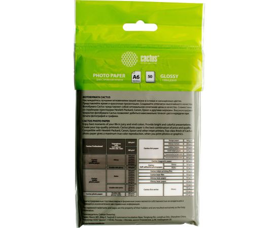 Фотобумага Cactus CS-GA618050ED A6/180г/м2/50л/белый глянцевое для струйной печати