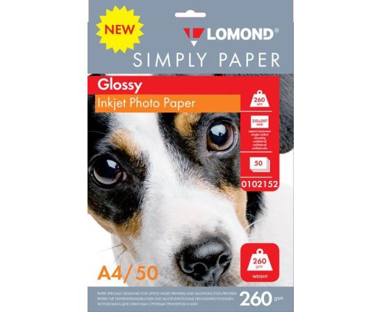 Фотобумага Lomond Simply 0102152 A4/260г/м2/50л./белый CIE148 глянцевое для струйной печати