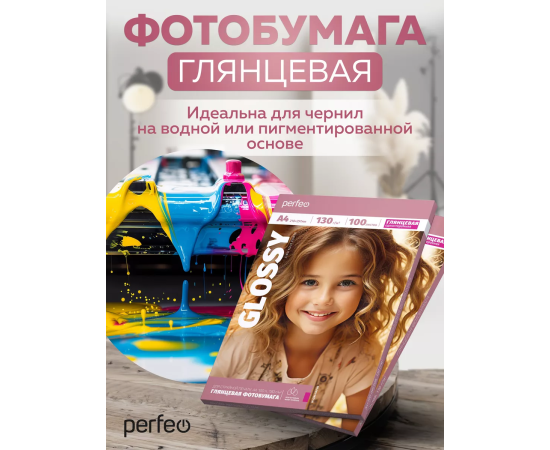 Фотобумага Perfeo А4 130 г/м2 глянцевая 100л (PF-GLA4-130/100) (G18)