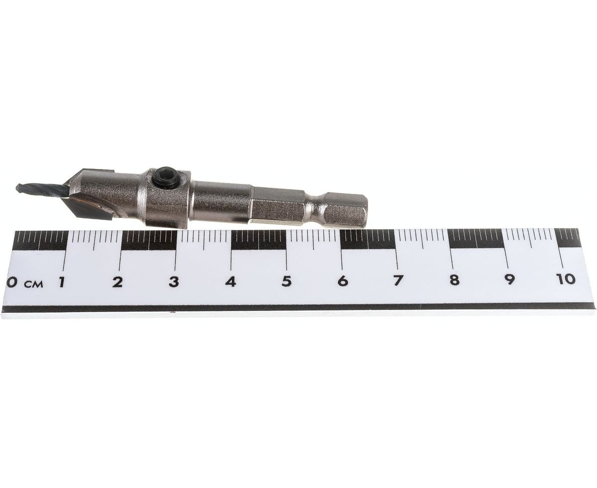 Оснащена сверлом и режущими ножами для эффективного сверления и фрезерования углублений и отверстий до нужного диаметра. Отлично высверливает отверстие под крепеж и одновременно с этим нарезает фаску под утапливание его головки в потай.