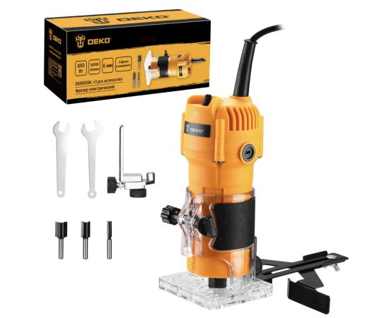 Фрезер электрический DEKO DKR850W с набором фрез применяется в различных столярных и плотницких работах для обработки кромок и профилей, фасок в деревянных конструкциях, для изготовления пазов и т.д.