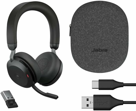 Гарнитура Jabra Evolve2 75, для компьютера/мобильных устройств, накладные, Bluetooth, черный