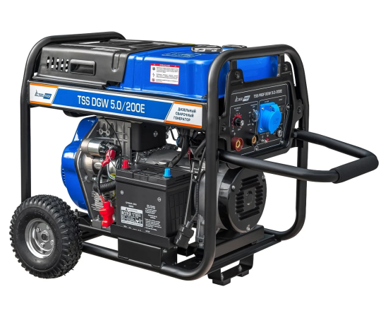 Профессиональная модель, разработана специально для проведения сварочных работ в тяжелых условиях эксплуатации. Номинальный сварочный ток составляет 200А при продолжительности включения 100%. Аппарат имеет расширенные сварочные настройки. Номинальный сварочный ток 200 Ампер. Кроме этого, генератор можно использовать как автономный источник электроснабжения. Можно освещать место сварки, подключать электроинструмент - дрель, шлифмашинку, болгарку и т.п. Мощность генератора 5 кВт.