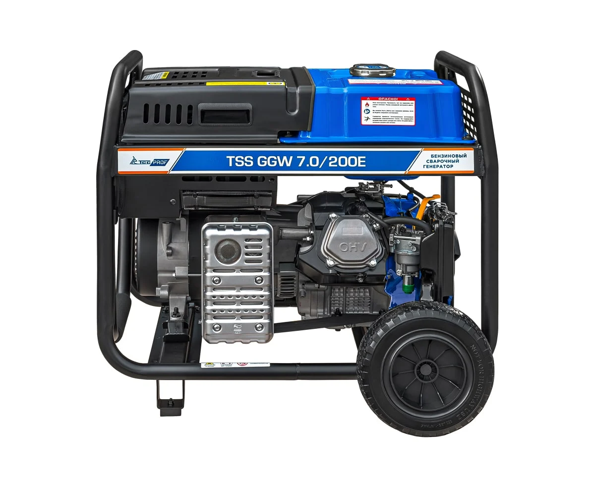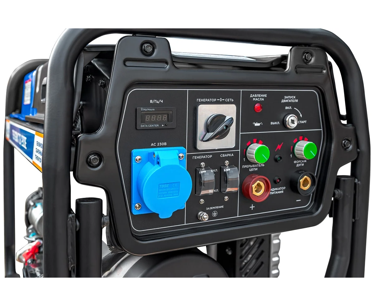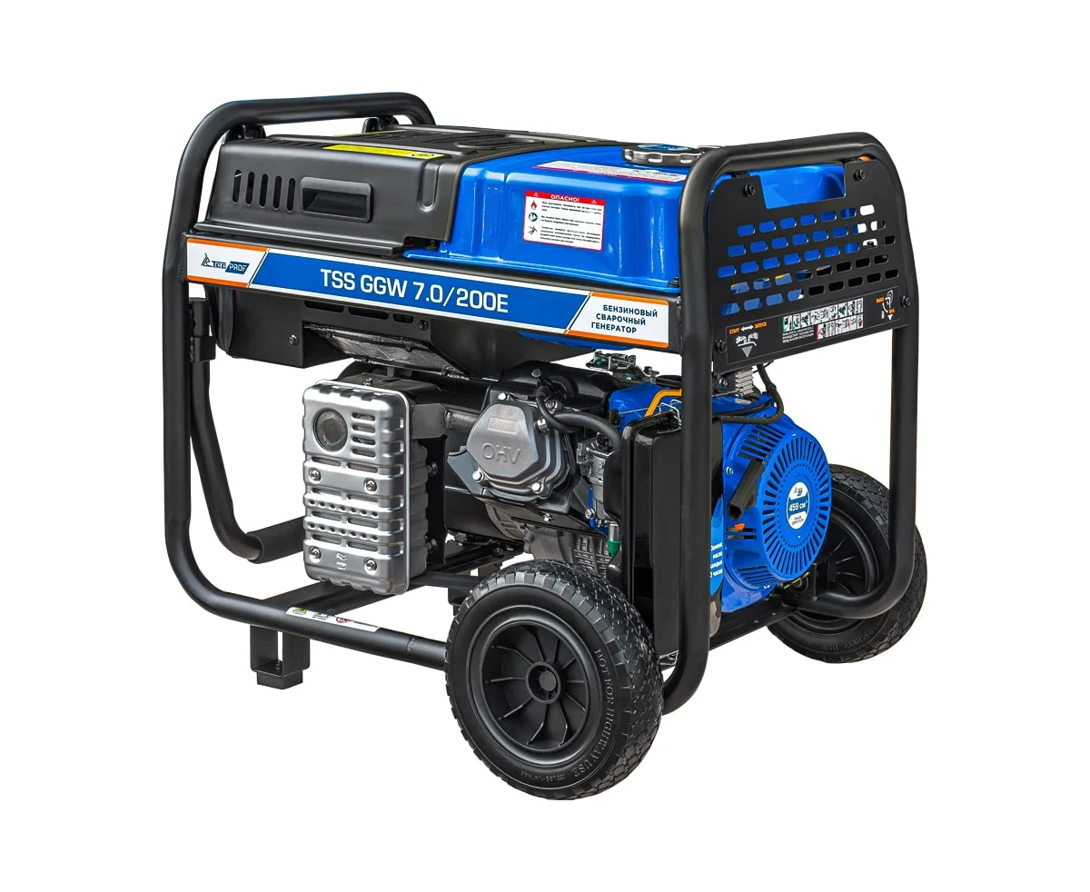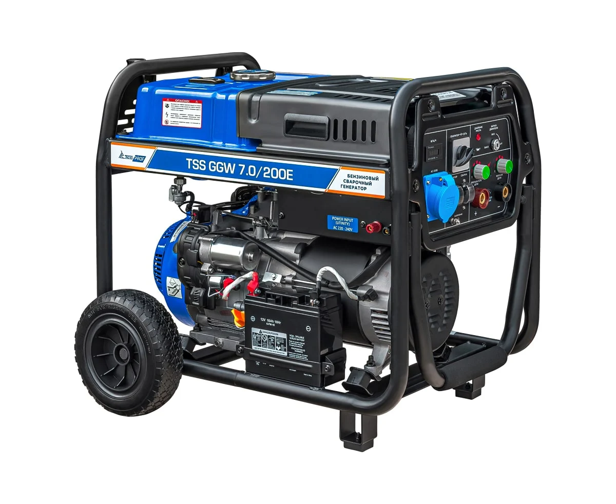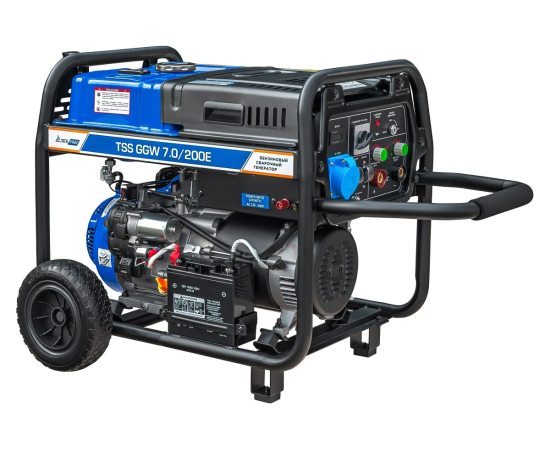Это профессиональная модель, разработана специально для проведения сварочных работ в тяжёлых условиях эксплуатации. Номинальный сварочный ток составляет 200А при продолжительности включения 100%! Аппарат имеет расширенные сварочные настройки. Номинальный сварочный ток 200 Ампер. Кроме этого, генератор можно использовать как автономный источник электроснабжения. Можно освещать место сварки, подключать электроинструмент - дрель, шлифмашинку, болгарку и т.п. Мощность генератора 7 кВт.