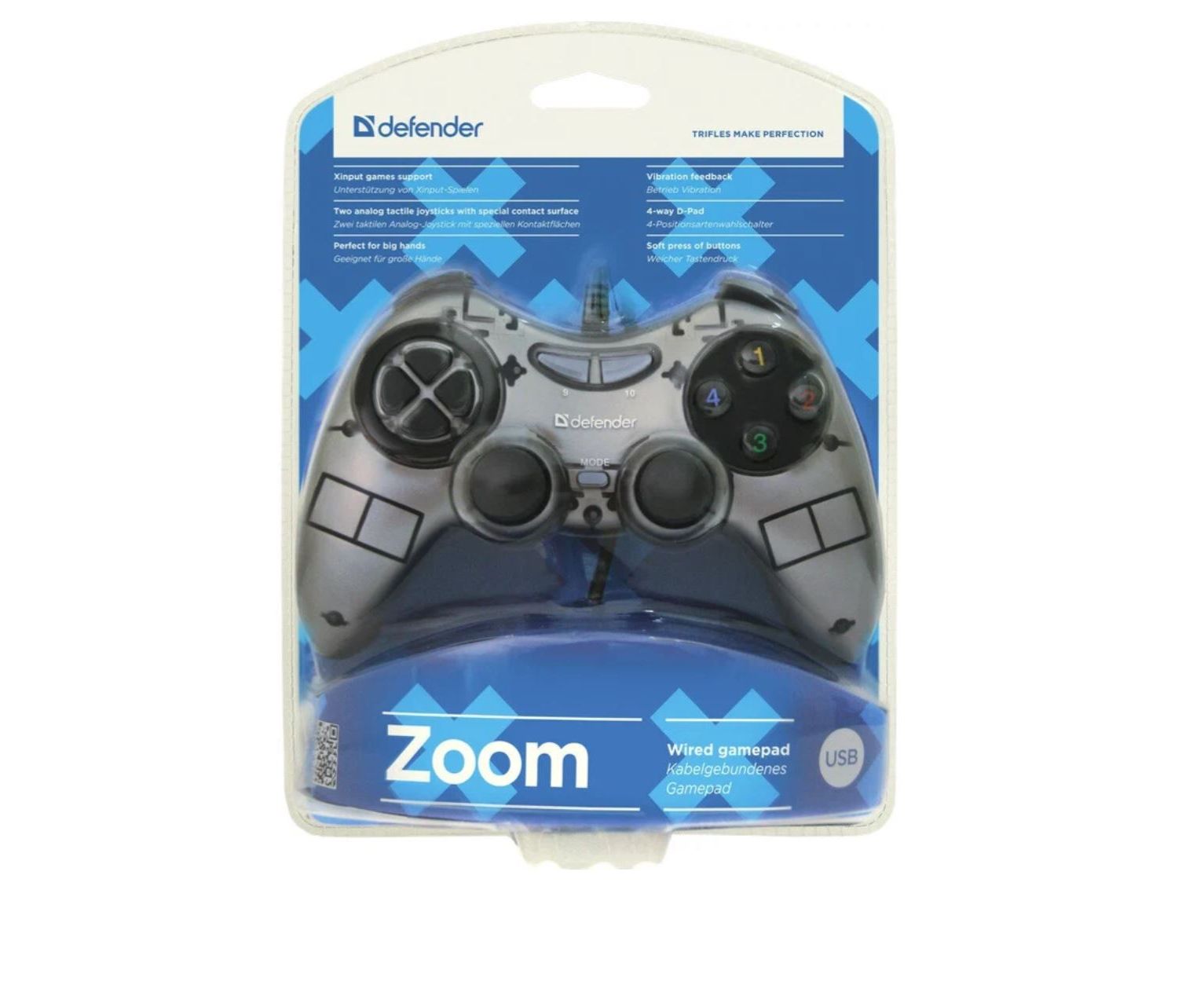 Геймпад Defender Zoom, USB Xinput, 10 кнопок, 2 стика, кабель: 1,8 м