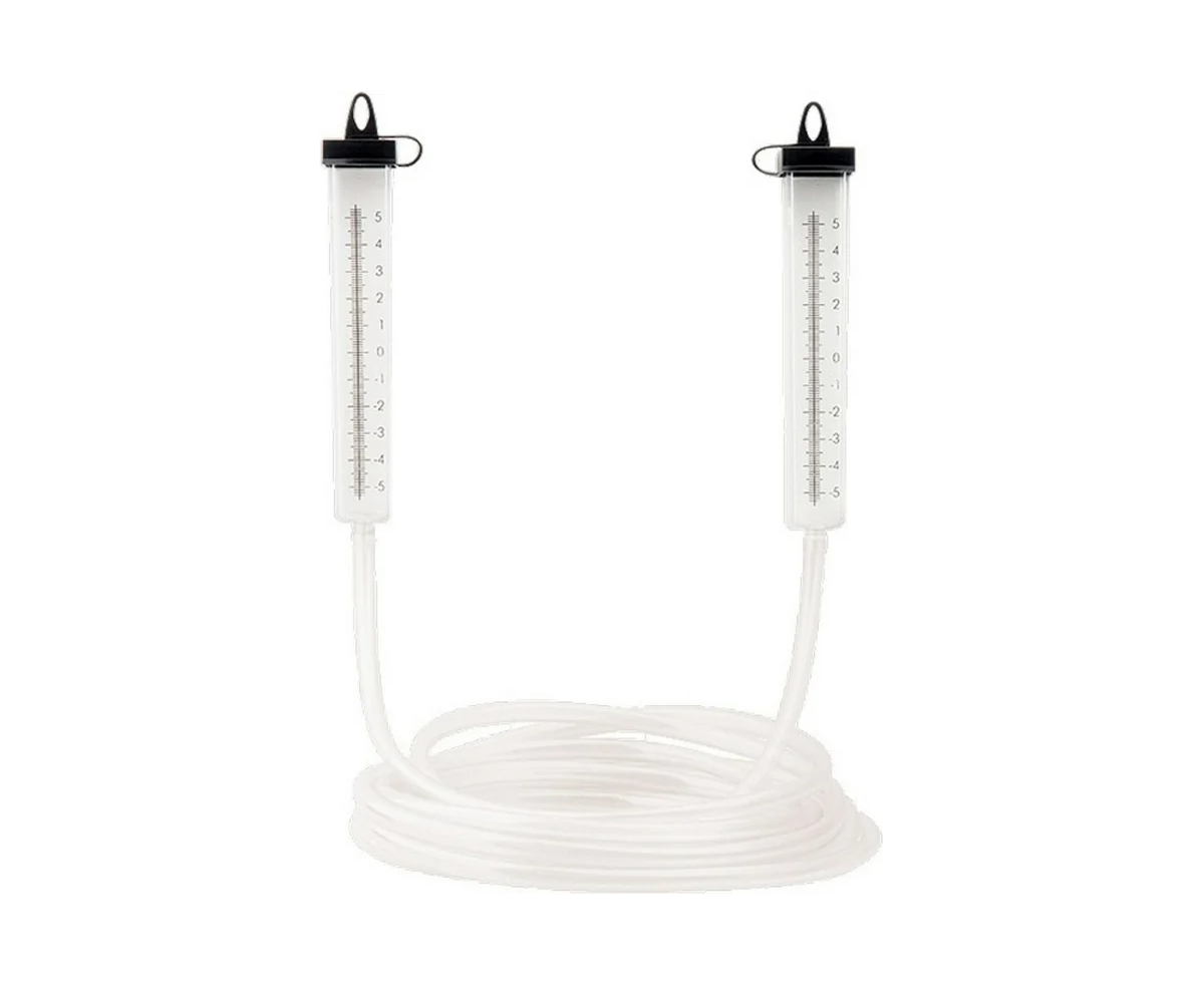 Гидроуровень СИБРТЕХ L 7 м, D 8 мм, со шкалой 37045 работает по принципу сообщающихся сосудов, то есть уровень воды в обеих колбах должен находится на одной высоте. Используется для проведения горизонтальных линий на поверхности. Гибкий шланг имеет диаметр 8 мм, а длина приспособления составляет 7 метров.