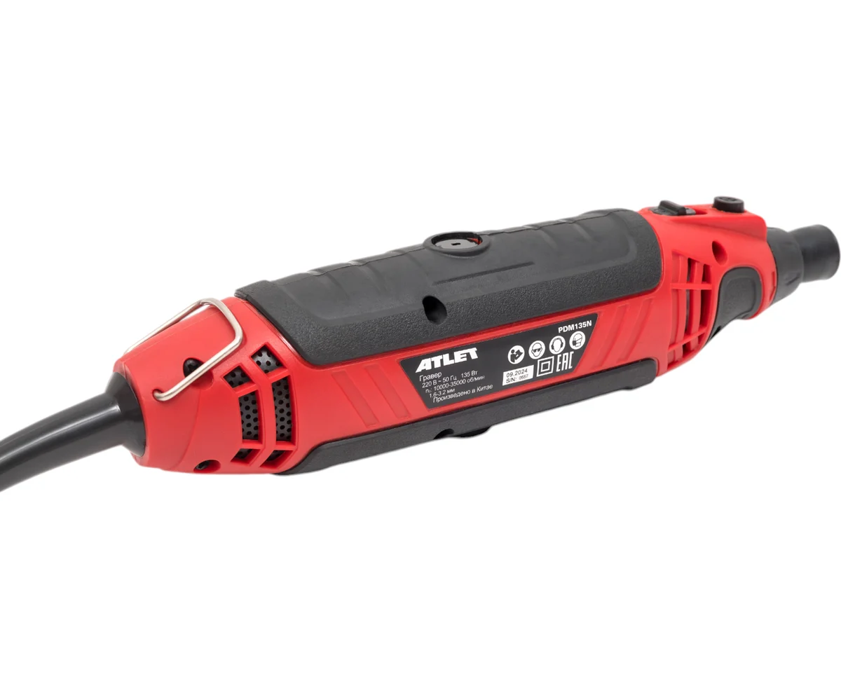 Гравер ATLET PDM135N мощностью 135 Вт с регулируемой скоростью от 10,000 до 35,000 об/мин — это удобный бытовой инструмент, используемый в различных задачах