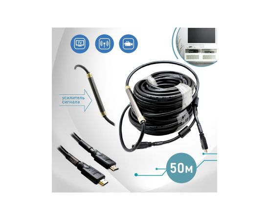 HDMI Кабель v 1.4 с усилитилем 50 м, Черный
