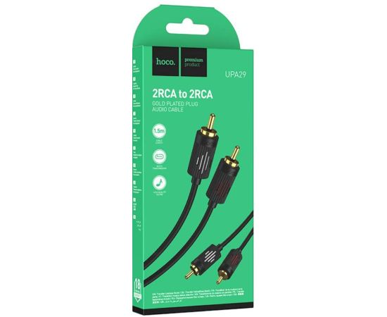 Аудио кабель HOCO UPA29/ AUX 2xRCA - 2xRCA/ 1.5m/ позолоченные контакты/ Нейлон/ Черный