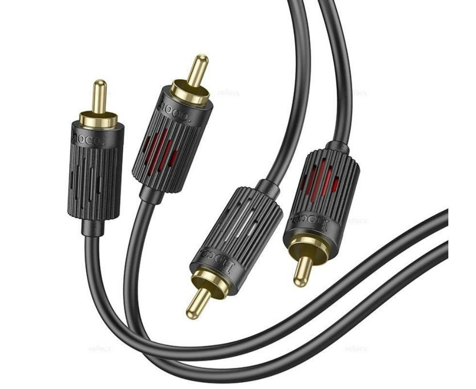 Распродажа! Аудио кабель HOCO UPA29/ AUX 2xRCA - 2xRCA/ 1.5m/ позолоченные контакты/ Нейлон/ Черный, (Арт. HC-07766)