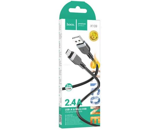 Кабель HOCO X109/ USB Micro/ 2m/ 2,4A/ Силикон/ Черный