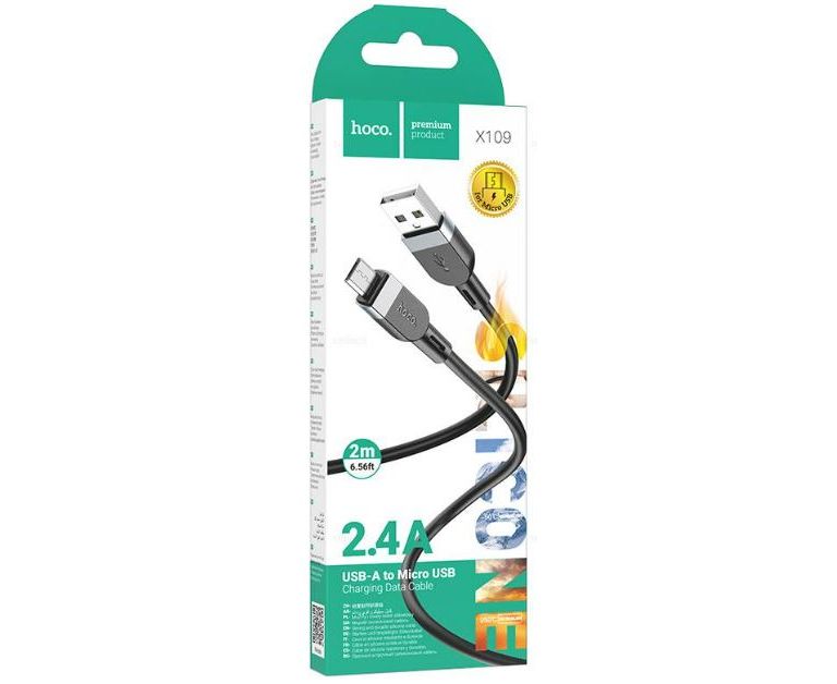 Кабель HOCO X109/ USB  Micro/ 2m/ 2,4A/ Силикон/ Черный