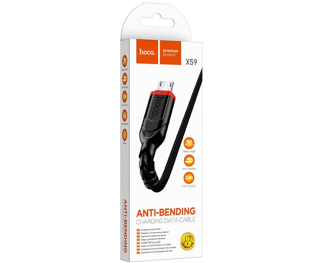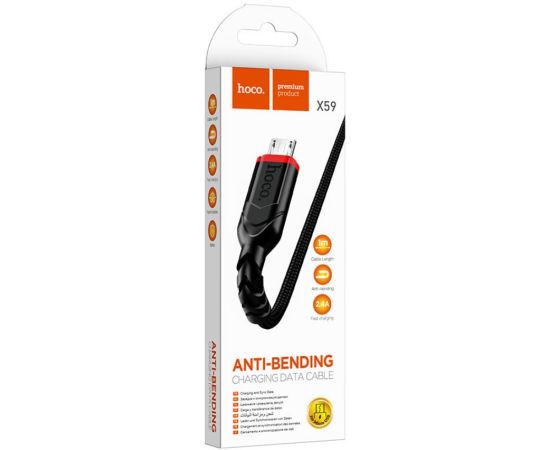 Кабель HOCO X59/ USB Micro/ 1m/ 2.4A/ Нейлон/ Черный