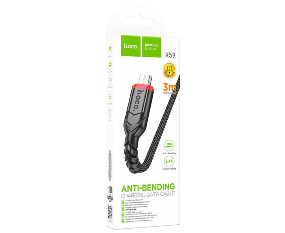 HOCO X59/ USB кабель Micro/ 3m/ 2.4A/ Нейлон/ черный