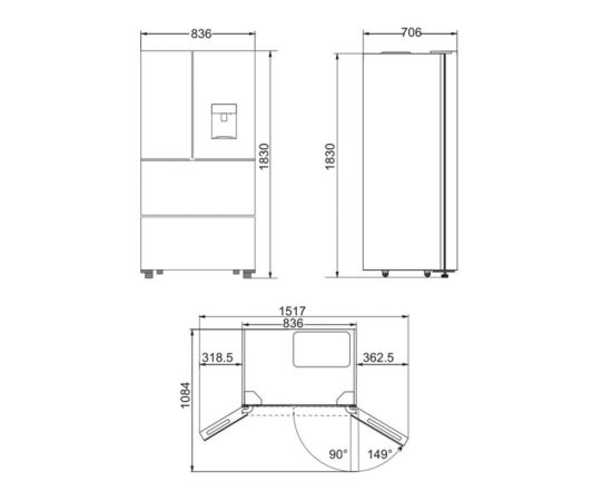 Габариты (ШxГxВ), мм. 836/706/1830