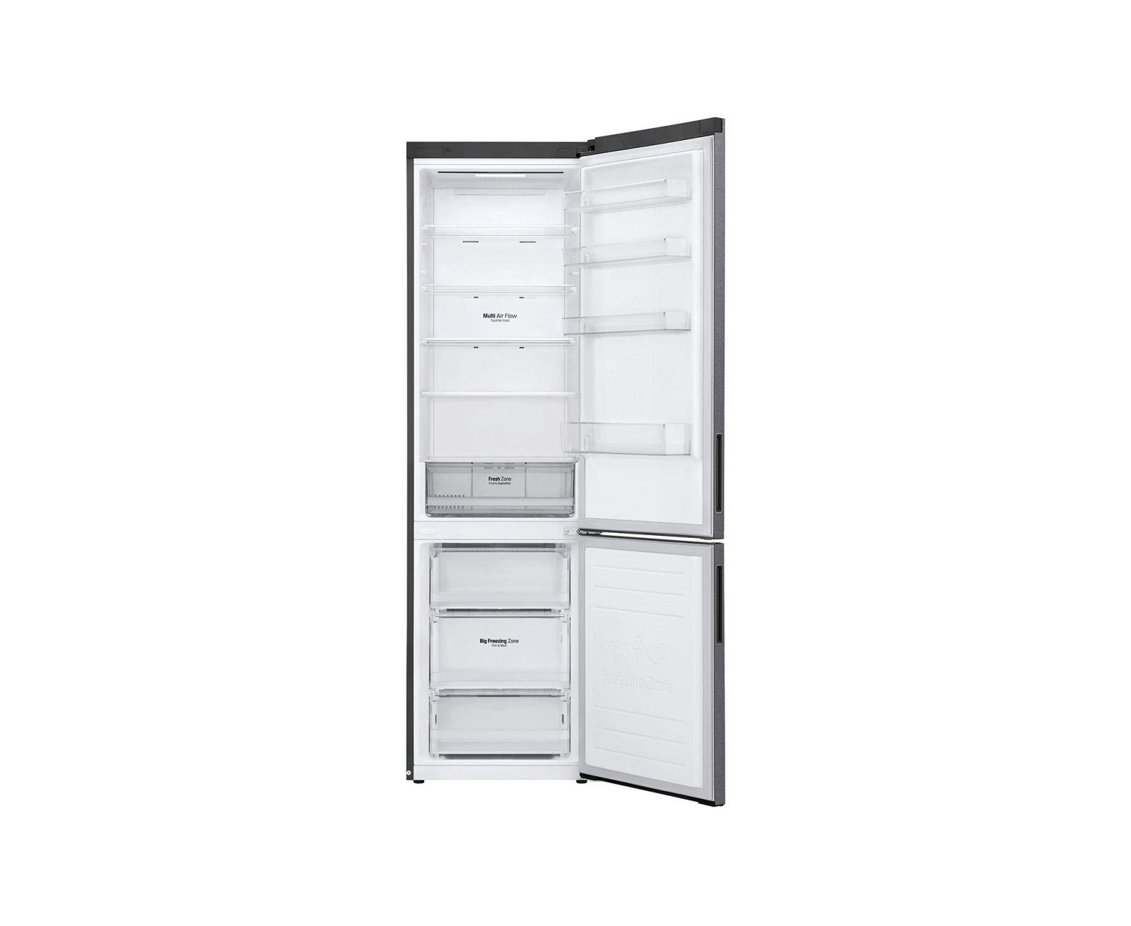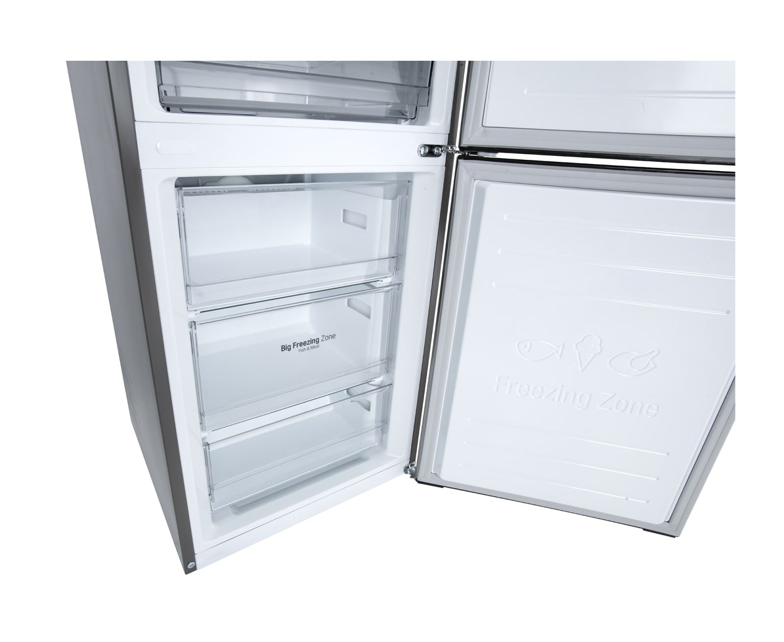 Морозильное отделение вместимостью 107 литров расположено внизу. Его замораживающая способность — 12 кг/сутки. Благодаря системе Total No Frost ни морозилка, ни холодильная камера не требуют периодической разморозки.