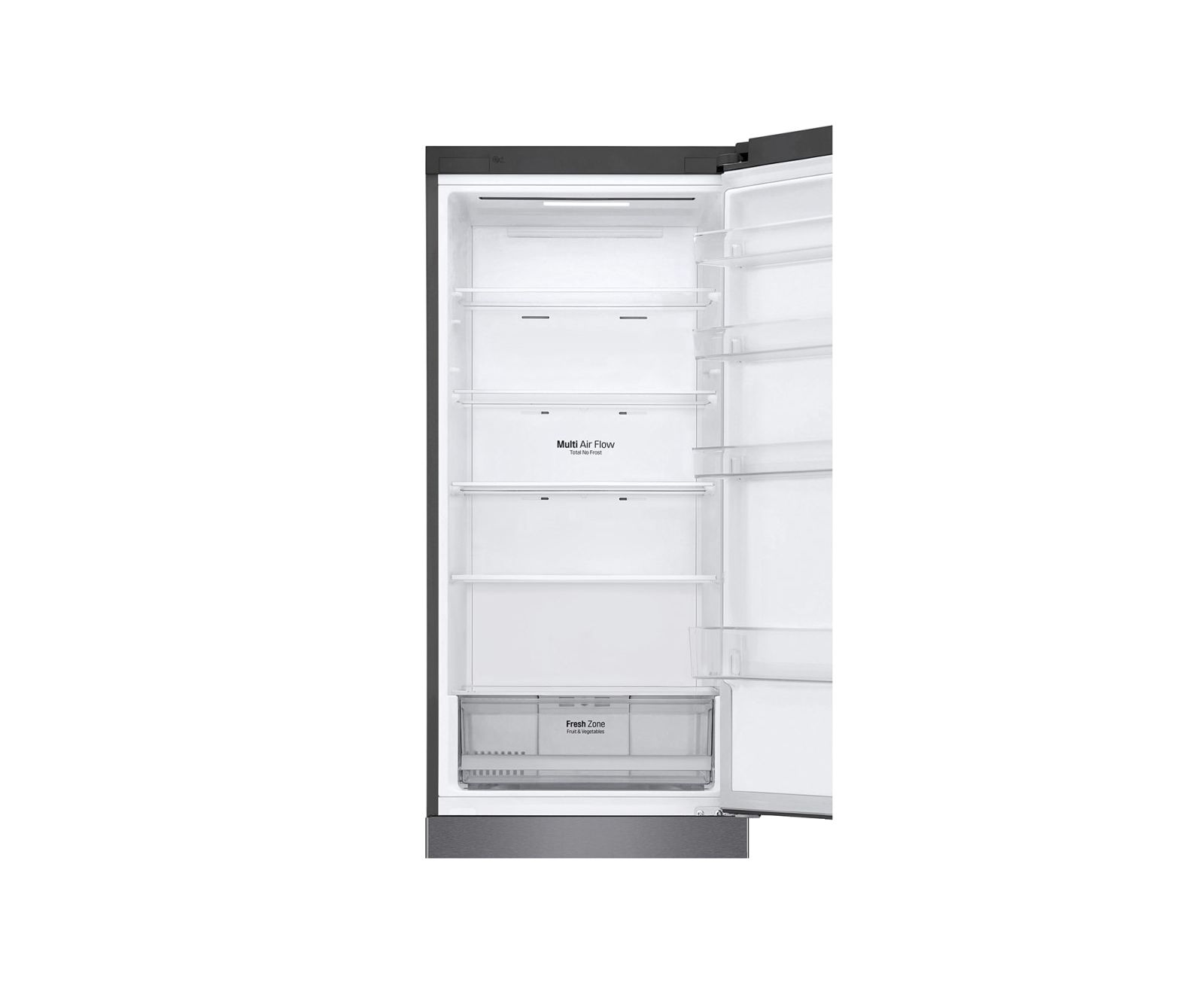 Холодильник LG DoorCooling+ GA-B509CLWL с общим полезным объемом 277 литров благодаря специальной панели подачи холодного воздуха, расположенной в верхней части основной камеры, охлаждает продукты быстро и равномерно, позволяя им дольше сохраняться свежими.