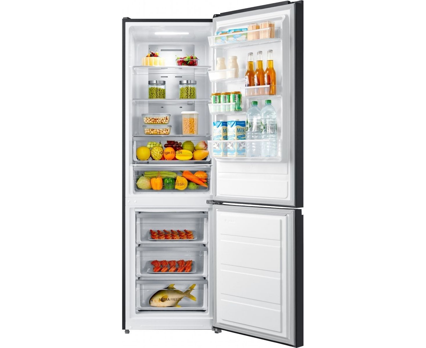 Дополнительно индикатор закрытия дверцы, перевешивание дверей, защита от детей, LED освещение