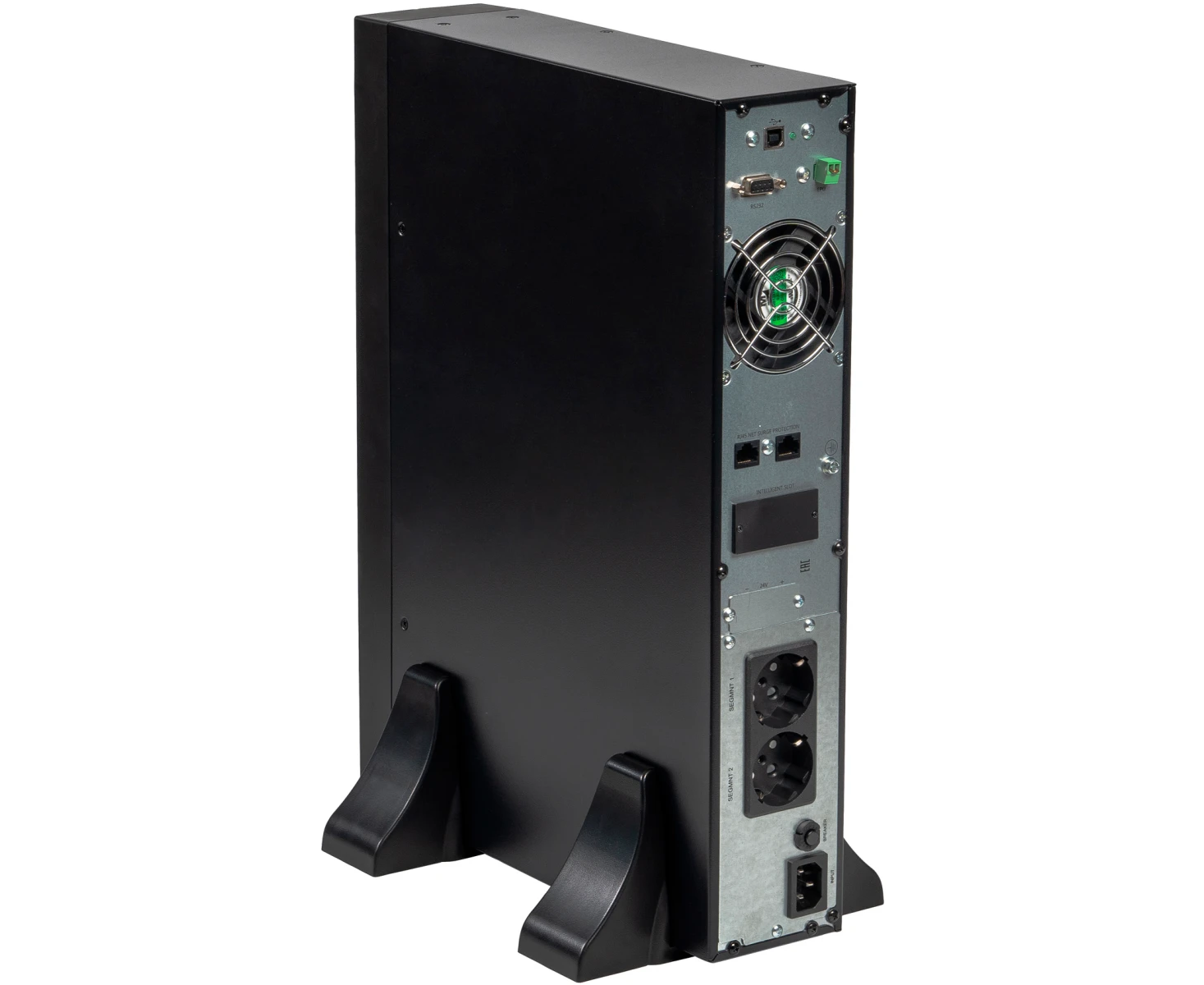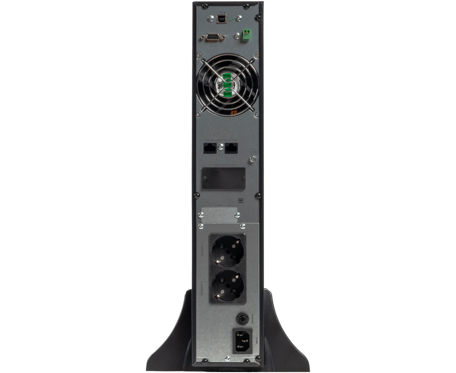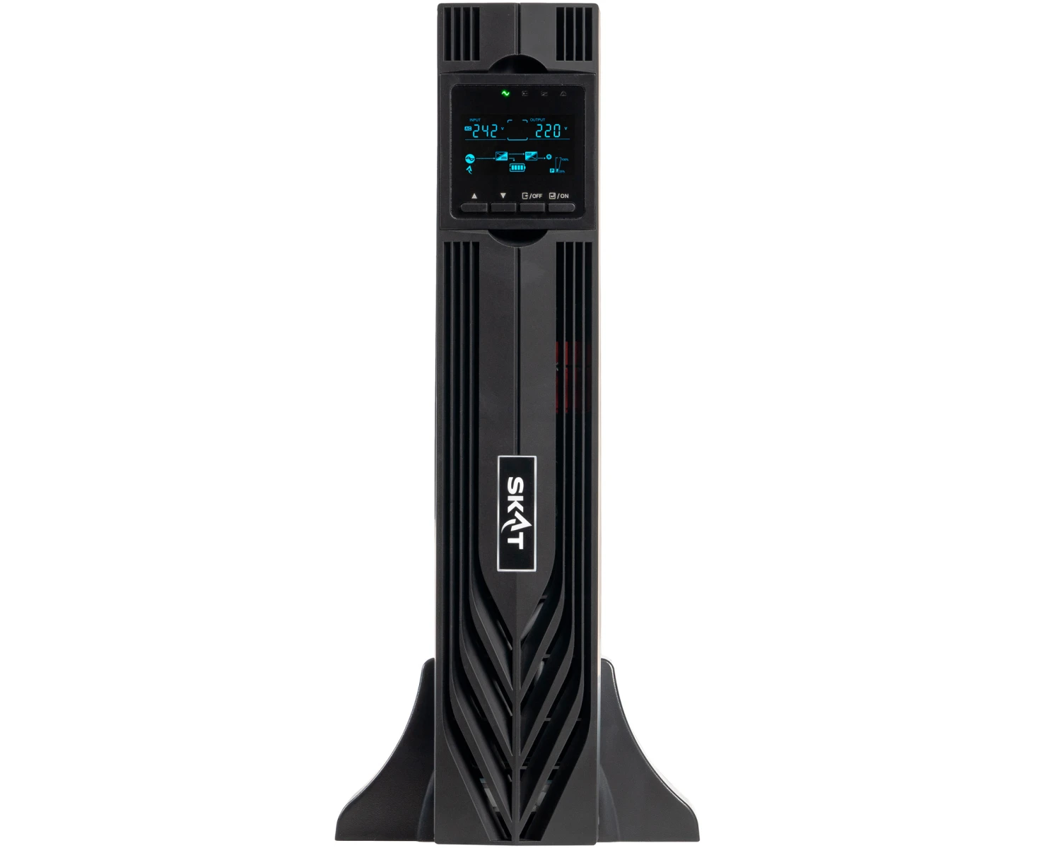 Управление и мониторинг удобно осуществлять с помощью информативного жидкокристаллического экрана на лицевой панели. Для интеграции в систему управления доступны встроенные интерфейсы: Ethernet, RS-232 и USB, а также специальный слот для установки дополнительной SNMP-карты, позволяющей осуществлять удаленный контроль по сети. Устройство выполнено в классическом черном цвете, имеет компактную высоту 2 стандартных юнита для монтажа в стойку и отличается умеренным уровнем шума около 55 децибел. Функция холодного старта позволяет запустить оборудование от батарей даже при полном отсутствии сетевого напряжения, что может быть критически важно в нештатных ситуациях.