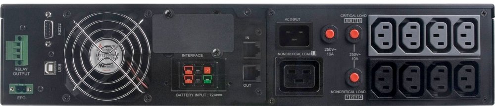 с двойным преобразованием, 2000 ВА / 1800 Вт, многофункциональный ЖК-дисплей, 8 компьютерных разъемов (IEC 320 C13), USB, RS-232, USB, RS232, релейный выход, EPO, защита телефонной линии