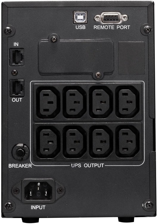 интерактивный ИБП, 1-фазное входное напряжение, выходная мощность 1000 ВА / 800 Вт, 8 компьютерных розеток (IEC 320 C13) с питанием от батареи, USB, время зарядки 4 ч
