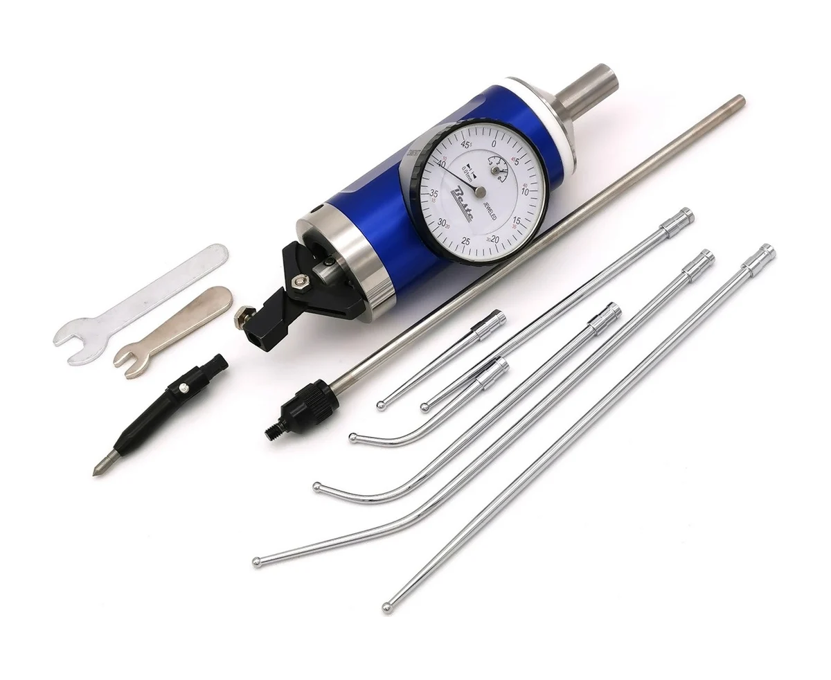 Индикатор-центроискатель BESTE 0-3мм, 0.01 мм AC00301110 используется для позиционирования шпинделя фрезерного станка относительно заготовки. Хвостовик вместе с индикаторным механизмом и щупом может свободно вращаться внутри корпуса устройства с индикаторной шкалой.