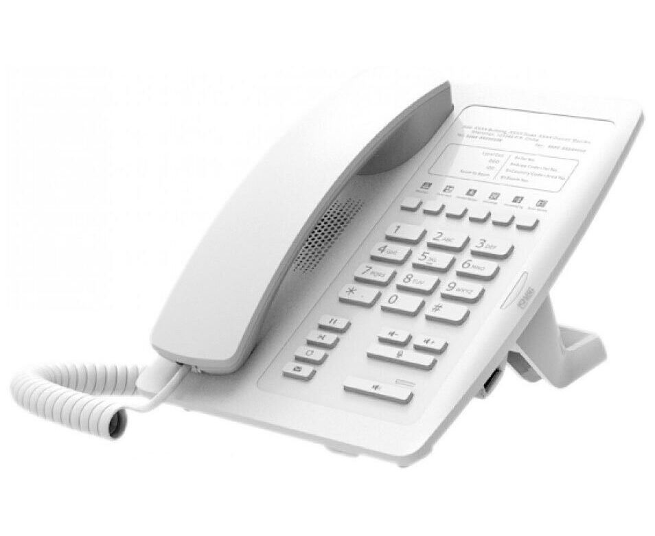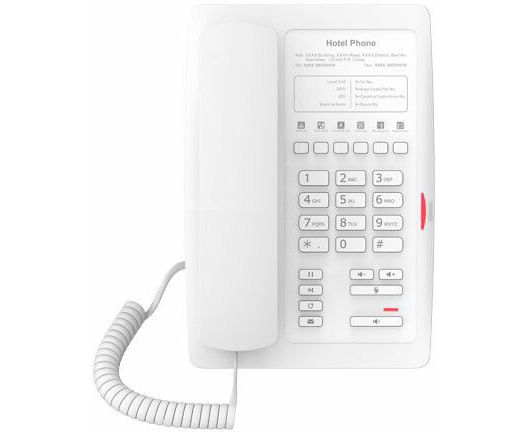 IP- телефон Fanvil H3 white – создан специально для отелей, предъявляющих высокие требования к телефонной инфраструктуре и качеству сервиса. Поддерживает до 2-х SIP-аккаунтов, питание PoE, аудио HD качества. На телефоне 10 программных клавиш, операционная система на базе Vxworks, поддержка защищённых протоколов: SIP over TLS и SRTP, совместимость с большинством платформ для IP-телефонии: 3CX, Asterisk, Broadsoft, Elastix, Zycoo, и др.