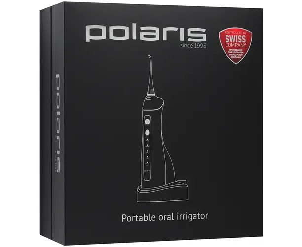 Ирригатор Polaris PWF 0201 представлен в черном корпусе с контейнером на 220 мл. Устройство оснащено пятью режимами давления воды с предельным значением 620 кПа. Импульсная технология подает струю с 1400-1700 пульсаций в минуту.