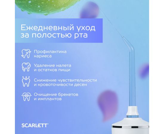 Использование ирригатора не только улучшает здоровье полости рта, но и вдохновляет на заботу о себе. Наш продукт предназначен для осознанных потребителей, которые понимают важность профилактики и здоровых привычек. Ирригатор Scarlett поможет устранить налет и бактерии, предотвратив заболевания десен и обеспечив безупречную чистоту. Более того, он идеально подходит для отбеливания зубов, помогая добиться сияющей и здоровой улыбки.