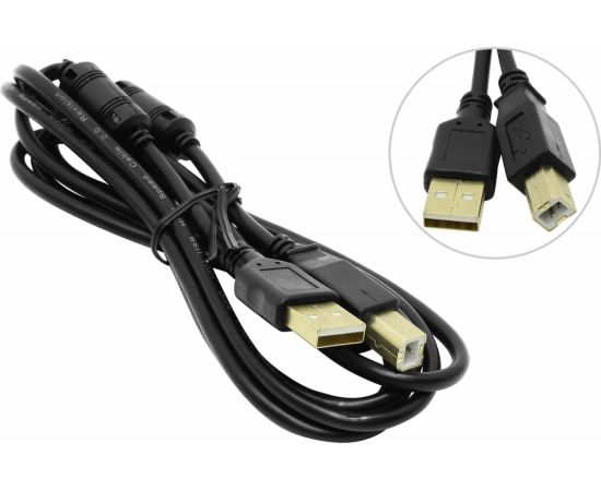 Кабель 5bites UC5010-018A USB2.0, AM/BM, зол.разъемы, ферр.кольца, 1.8м, черный
