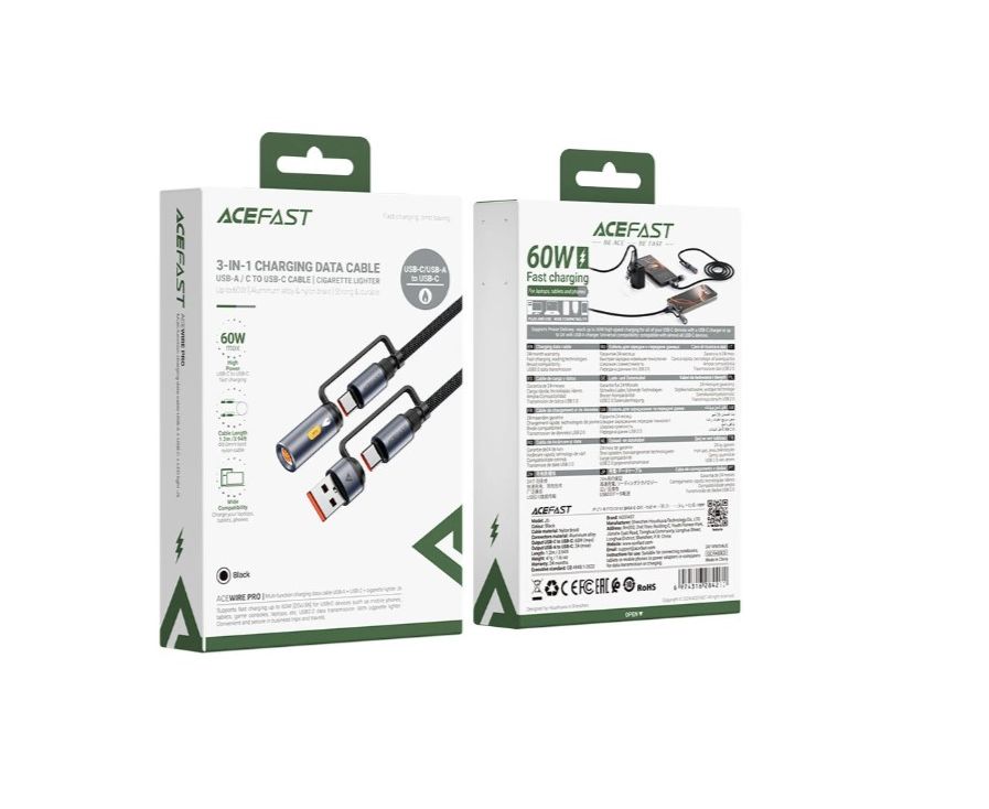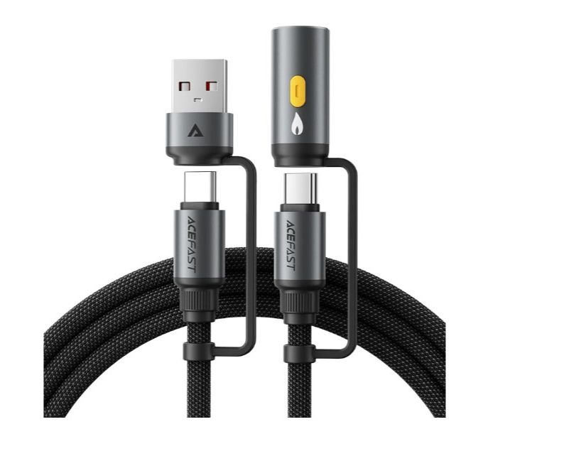 Дата-кабель ACEFAST J6 Multi-Function Charging Data Cable USB-A+ USB-C+ Cigarette Lighter с коннектором в прикуриватель. черный