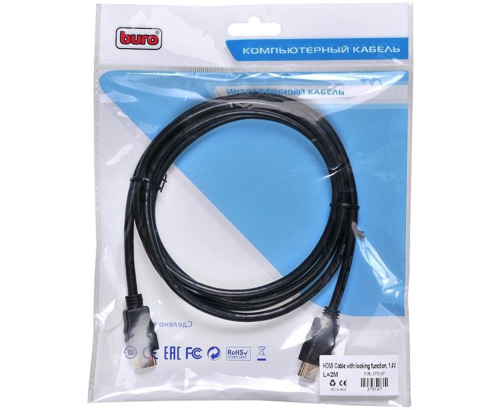 Кабель аудио-видео Buro HDMI 1.4 HDMI (m)/HDMI (m) 2м. Позолоченные контакты черный (BHP2M)