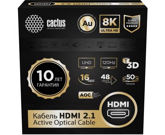 Кабель аудио-видео Cactus CS-HDMI-AOC-2.1-50 HDMI(m)/HDMI(m) 50м позолоч.конт. черный