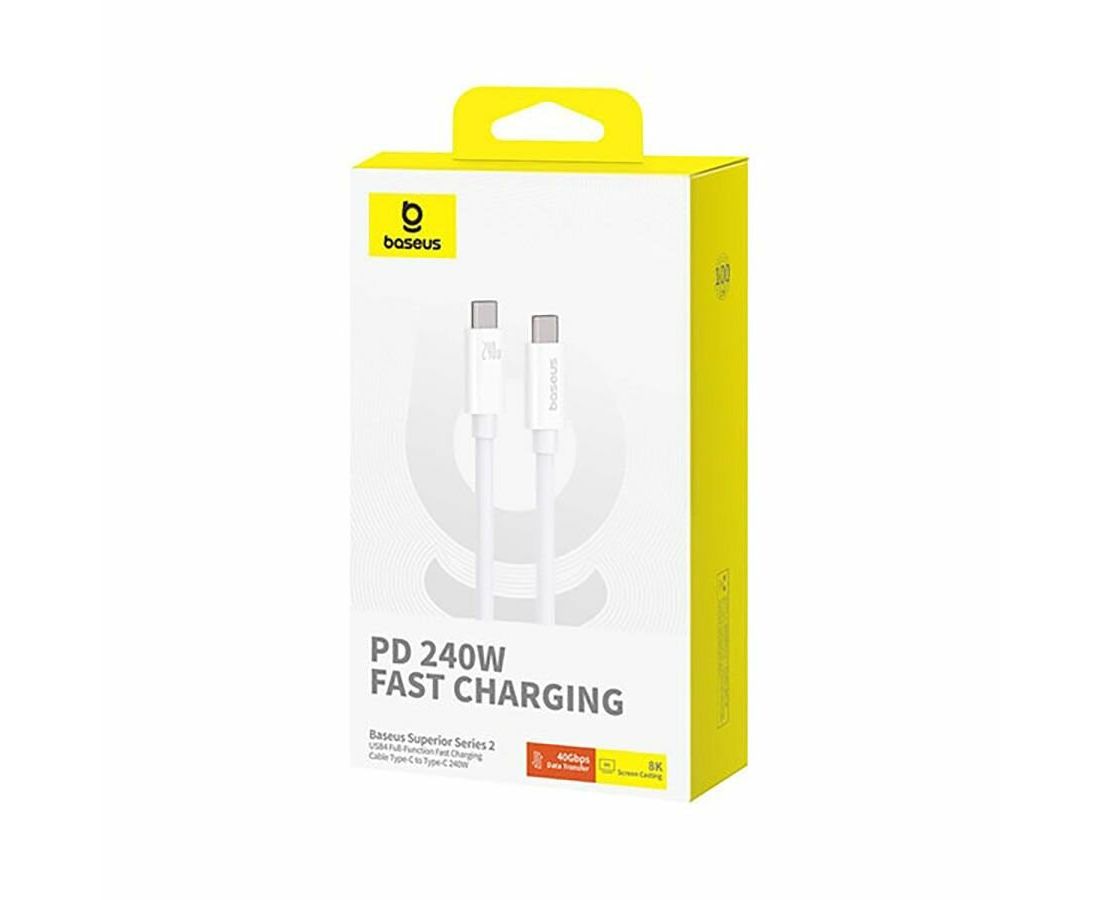 Кабель BASEUS P10365200211-02 Superior Series 2 USB4 Full-Function Fast Charging Cable Type-c to Type-c 240W 1m Moon White