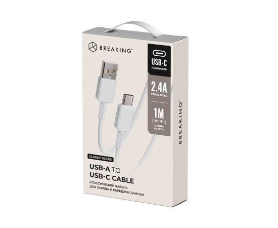 Кабель Breaking Classic USB - Type-C 1m. 2.4A (Белый)