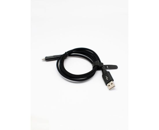 Дата-кабель с возможностью быстрой зарядки в оплётке со стяжкой USB 2.0 (M) - 8-Pin (M), Сила тока: 2A. 1м. Черный.