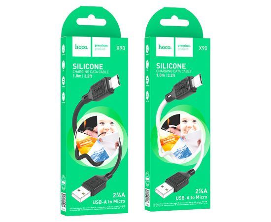 X90 Cool, кабель для зарядки и передачи данных USB на Micro-USB, ток до 2.4A, силиконовая оплётка, длина – 1м