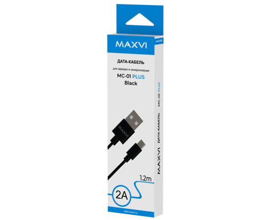 Кабель Maxvi MC-01 plus black USB-A-microUSB, 2A