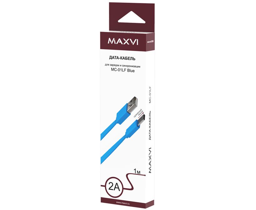Кабель Maxvi MC-01LF blue USB-A-microUSB, 2A