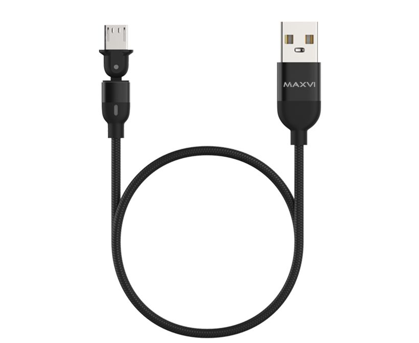 Кабель Maxvi MC-19M black, USB-A-microUSB, 2.4A, LED