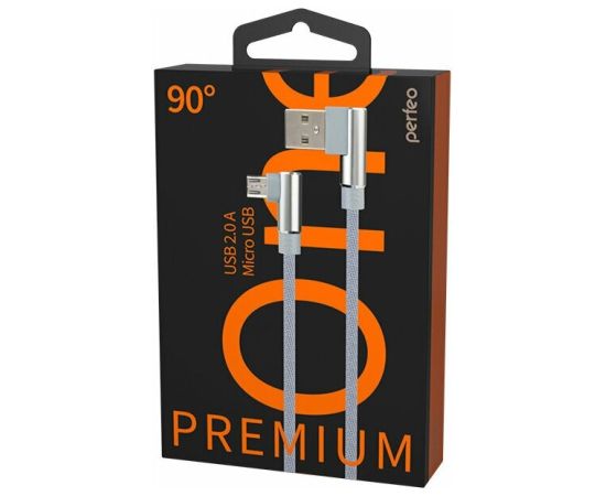 Кабель PERFEO U4805 USB2.0 A вилка - Micro USB вилка, угловой, серый, длина 1м, бокс