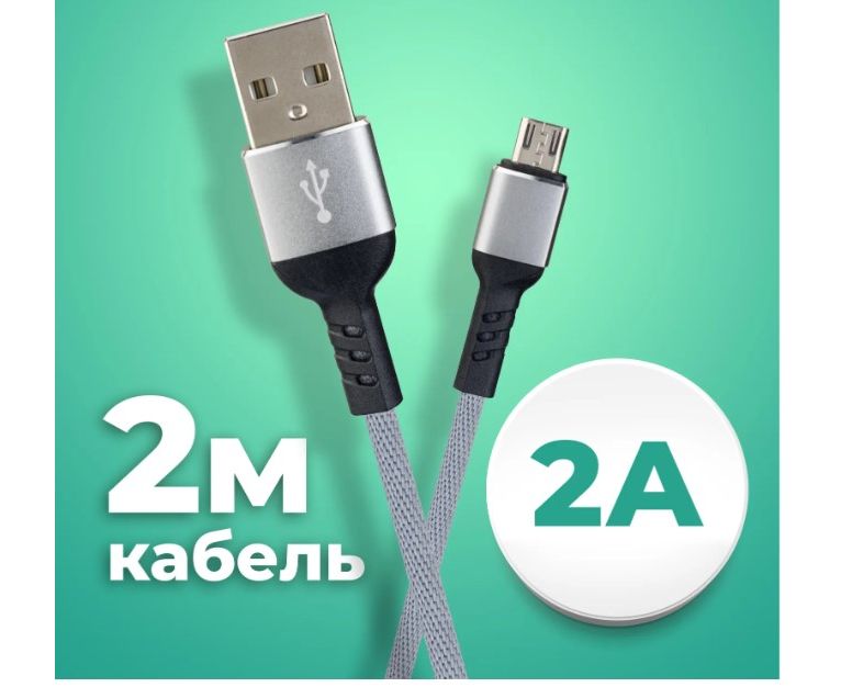 Кабель PERFEO U4809 USB2.0 A вилка - Micro USB вилка, серый, длина 2м, бокс